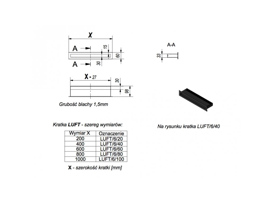 Kratki Luft, to je moderní krbová mřížka určená pro potřebné proudění vzduchu. Vzhledem ke speciálnímu a neviditelnému průduchu je třeba dbát na správnou montáž. O celkový vzhled a povrchovou odolnost se stará prášková barva. Krbovou mřížku umísťujte do vhodných částí krbové obestavby.