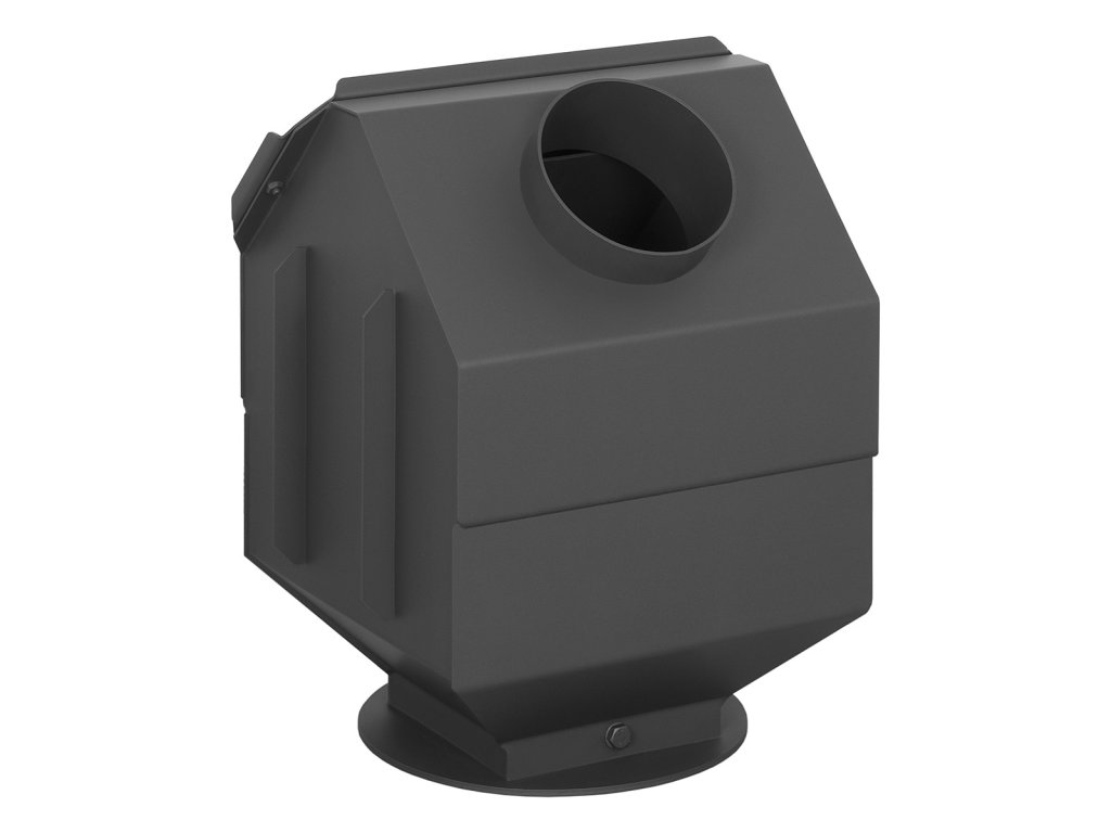 Teplovzdušný výměník s čistícím otvorem a průměrem odkouření 180 mm s možností připojení teplotního čidla.